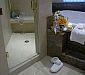 A Contemporary Master Bath... remodel adds square footage to create a separate shower and tub. Creating an organized space for this neat-nick client was top priority... concealing hampers in the vanity, adding an oversized medicine cabinet with glass shelves, a habadashery drawer and a concealed pull-out shelf for the Bose radio, gave him all the space he needed to keep tidy and then make room for a new wife. They now enjoy relaxing in their HydroSystems Monterey tub with heat, chromatherapy and massage jets, in addition to a walk-in shower. Check out the...    Before Photos