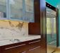 This contemporary classic kitchen remodel in Newport Beach was inspired by a clean, classic European style. The heavy duty stainless doors with opaque glass sparkle with wenge veneer cabinets. Carrera marble countertops and backsplash and KitchenAid appliances add the finishing touch.