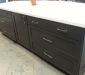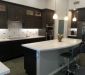 Making this homeowners' dream kitchen meant re-configuring the space for creating large family gatherings. Look closely and you might notice the base cabinets are a charcoal gray paint finish with the wall and tall cabinets are a stained gray finish... why you might ask? It's all in the lighting! Before and After Photos